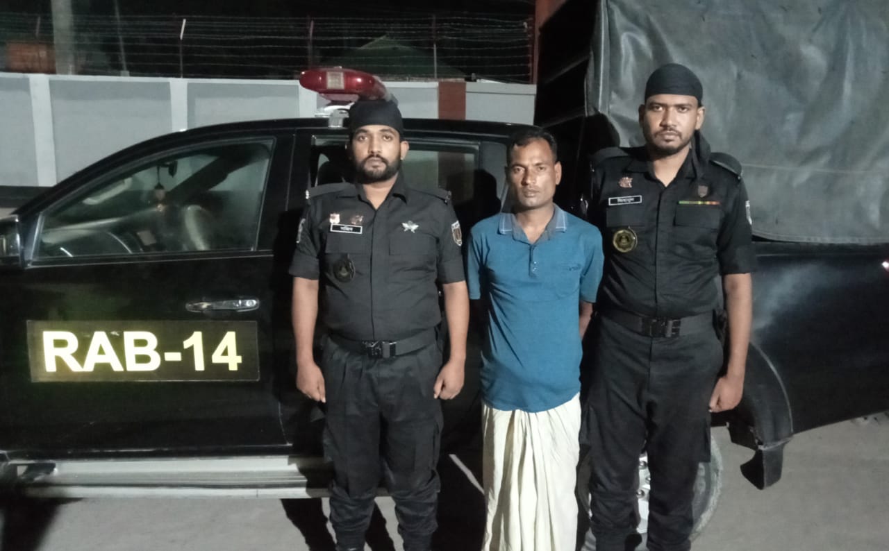 মাসুদুর রহমান - বৈষম্য বিরোধী ছাত্র-জনতার গণমিছিলের হামলার ঘটনায় মিজানুর রহমান (৪০)কে গ্রেফতার করেছে জামালপুর র্যাব ১৪ । বুধবার (২৩ অক্টোবর) শেরপুর জেলার সদর থানার খাসপাড়া এলাকা থেকে তাকে গ্রেফতার করা হয়৷ গ্রেফতারকৃত মিজান খাসপাড়া এলাকার মরহুম হাসেন আলীর ছেলে ৷ বুধবার দুপুর ৩ টায় র্যাব অধিনায়কের পক্ষে সিনিয়র সহকারী পুলিশ সুপার ও মিডিয়া অফিসার মোঃ নাজমুল ইসলাম বিষয়টি নিশ্চিত করেছেন। তিনি প্রেস বিজ্ঞপ্তি দিয়ে জানান,গত ০৪ অক্টোবর শেরপুর শহরে বৈষম্য বিরোধী ছাত্র-জনতার গণমিছিল বাহির হয়।গণমিছিলে বিকাল ৩ টা ৪৫ মিনিটে কতিপয় দুস্কৃতিকারীরা আন্দোলনরত ছাত্র-জনতার উপর এলোপাথারী গুলি করতে থাকে। দুস্কৃতিকারীদের গুলিতে সবুজ মিয়া(১৮) নামক একজন ছাত্র গুলিবিদ্ধ হয়ে ঘটনাস্থলেই মৃত্যুবরণ করে। নিহতের ভাই মোঃ সাদ্দাম হোসেন ১৮৬০ পেনাল কোডের ১৪৩/৩০২/৩৪ ধারায় শেরপুর সদর থানায় একটি হত্যা মামলা দায়ের করেন। যার মামলা নং-০৯, তারিখঃ ১২/০৮/২০২৪ ইং। তিনি আরো বলেন, মামলা রুজুর পর জামালপুর র্যাব-১৪, সিপিসি-১ কোম্পানি ছায়াতদন্ত শুরু করেন এবং জড়িতদের আইনের আওতায় নিয়ে আসার লক্ষ্যে কার্যক্রম শুরু করে। এরই ধারাবাহিকতায় র্যাবের একটি আভিযানিক দল বুধবার রাত ০০.৩০ মিনিটে শেরপুর জেলার সদর থানার খাসপাড়া এলাকায় অভিযান পরিচালনা করে মামলার এজাহারনামীয় আসামী মিজানুর রহমান গ্রেফতার করতে সক্ষম হয় । মামলার ঘটনায় জড়িত অন্যান্য আসামীদের গ্রেফতারের লক্ষ্যে র্যাবের অভিযান অব্যাহত আছে। তার বিরুদ্ধে পরবর্তী আইনানুগ ব্যবস্থা গ্রহণের জন্য শেরপুর জেলার সদর থানায় হস্তান্তর করা হয়েছে।