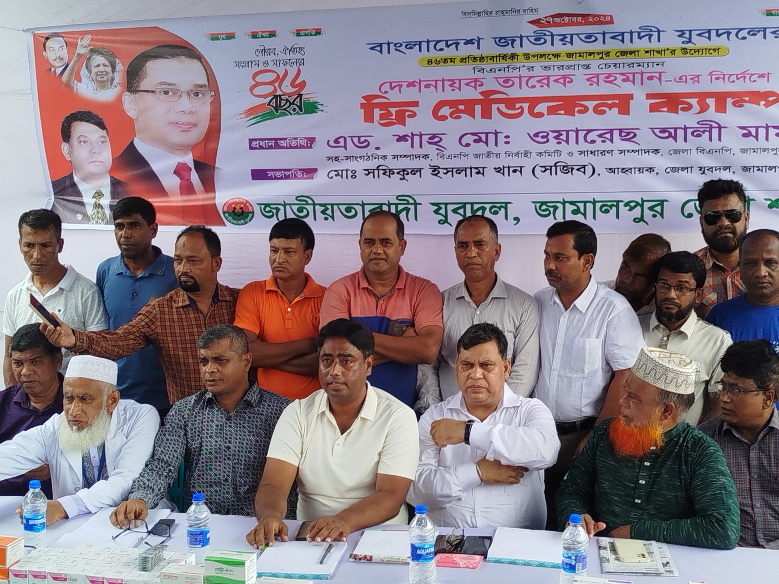 মাসুদুর রহমান : বাংলাদেশ জাতীয়তাবাদী যুবদলের ৪৬ তম প্রতিষ্ঠাবার্ষিকী উপলক্ষে জামালপুর জেলা শাখার উদ্যোগে বিএনপির ভারপ্রাপ্ত চেয়ারম্যান দেশনায়ক তারেক রহমান এর নির্দেশে ফ্রি মেডিকেল ক্যাম্প, বৃক্ষ রোপন, মিলাদ মাহফিল অনুষ্ঠিত হয়েছে। রবিবার সকাল সাড়ে ১০ টায় জামালপুর জেলা যুবদলের আয়োজনে শহরের স্টেশন রোড়ে দলীয় কার্যালয়ের সামনে এ মেডিক্যাল ক্যাম্প অনুষ্ঠিত হয় । জেলা যুবদলের আহবায়ক মো: সফিকুল ইসলাম খান সজিবের সভাপতিত্বে ও জেলা যুবদলের সাবেক দপ্তর সম্পাদক মো: আতিকুল রহমান লিটনের সঞ্চালনায় কেন্দ্রীয় বিএনপির সহ সাংগঠনিক সম্পাদক ও জেলা বিএনপির সাধারণ সম্পাদক এড. শাহ মো: ওয়ারেছ আলী মামুন প্রধান অতিথির বক্তব্য রাখেন। এ ছাড়াও ডা: আহমেদ আলী আকন্দ, জেলা বিএনপির যুগ্ম সাধারণ সম্পাদক শহিদুল হক খান দুলাল, যুবদলের সাবেক নেতা খন্দকার আহসুজ্জামান রুমেল, সাংগঠনিক সম্পাদক লুকমান আহমেদ লোটন, যুবদলের সাবেক নেতা রফিকুল ইসলাম রফিক, মিজানুর রহমান মিজান, জেলা যুবদলের সাবেক যুগ্ম সাধারণ সম্পাদক আমানুল্লাহ আমান, জেলা যুবদলের সাবেক সহ সাংগঠনিক সম্পাদক আলম হোসেন প্রমুখ বক্তব্য রাখেন। এ সময় সাবেক জেলা যুবদলের সাবেক সহ যুগ্ম সাধারণ সম্পাদক আনোয়ার জামান লিটন, সাবেক সহ সভাপতি আরিফ আহমেদ শুভ, যুবদল নেতা সোলায়মান হোসেন সোলে, খন্দকার মামুনুর রশিদ বাবু, সাবেক সহ সাংগঠনিক সম্পাদক আলম হোসেন, যুবদল নেতা হারুনুর রশিদ কালু, জাহাঙ্গীর আলম, সাবেক দপ্তর সম্পাদক আতিকুর রহমান লিটন, কোষাধ্যক্ষ আশরাফ হোসনে,গণ শিক্ষা বিষয়ক সম্পাদক অধ্যাপক মুশফিকুর রহমান লুলু, ঢাকা মহানগর উত্তর ৬ নং ওয়ার্ড বিএনপির দপ্তর সম্পাদক মো: মনির হোসেন স্বপন সহ জেলা যুবদলের প্রায় এক হাজার নেতা কর্মীরা উপস্থিত ছিলেন। মেডিক্যাল ক্যাম্প শেষে জেলা যুবদলের অর্ধ শতাধিক নেতাকর্মীরা রক্ত দান করেন ।